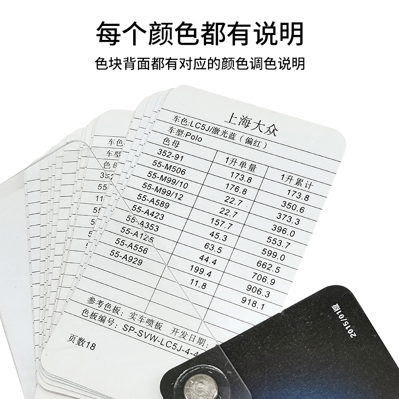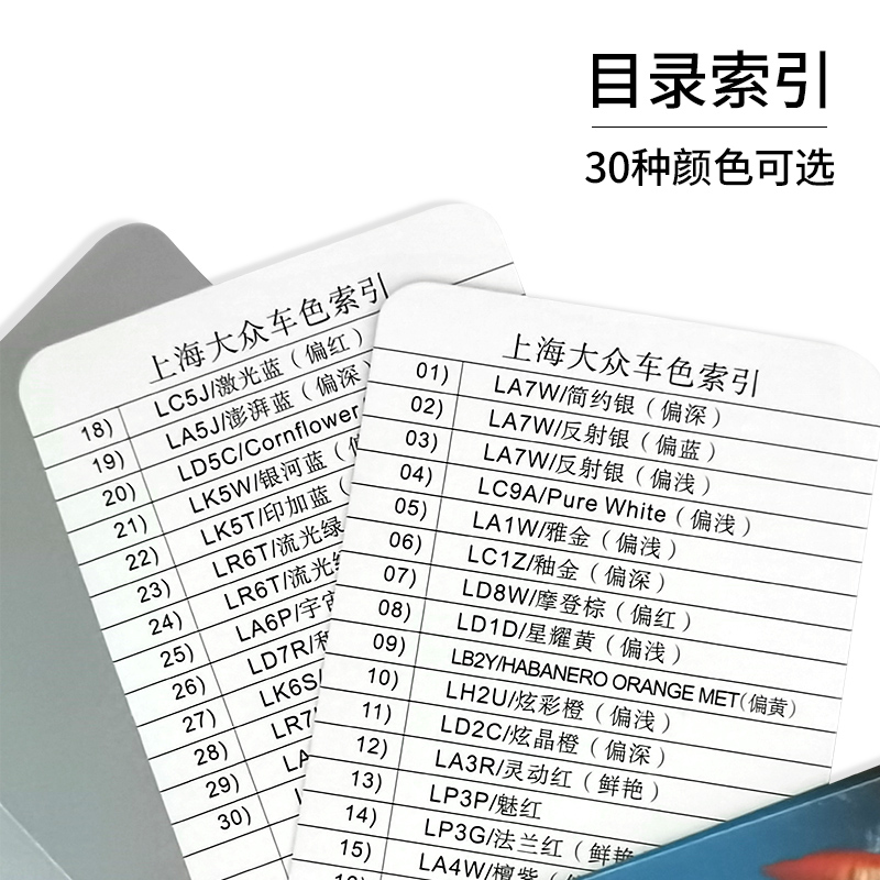 上海大众汽车油漆色卡样本30色调色母烤漆喷漆色板卡金属银涂料调漆配方比例单页色块颜色彩单张比色国际标准