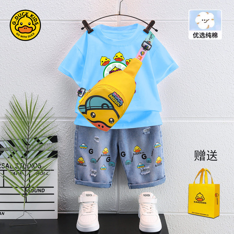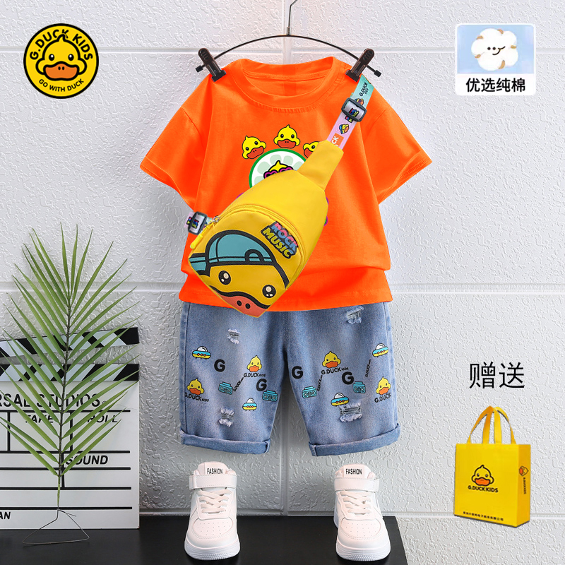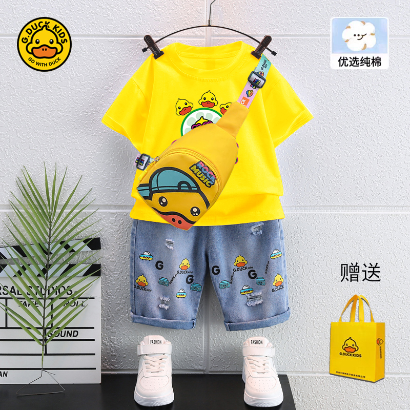 男孩5帅气t恤女童牛仔短裤 小黄鸭儿童夏装 2025新款 套装 两件套 短袖