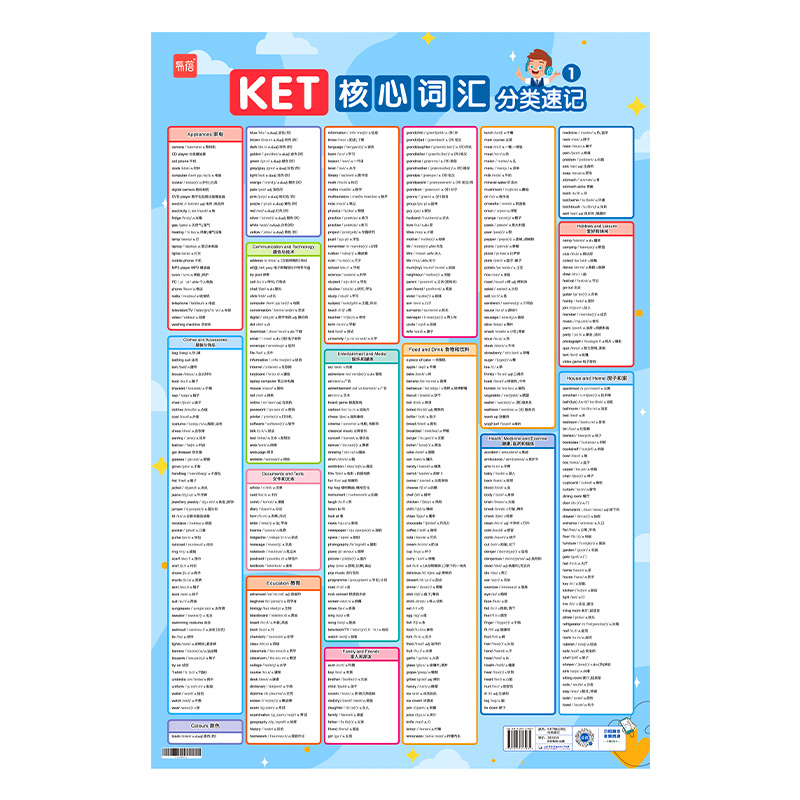 剑桥英语等级考试ket核心词汇表天天练小学高效记单词挂图墙贴纸