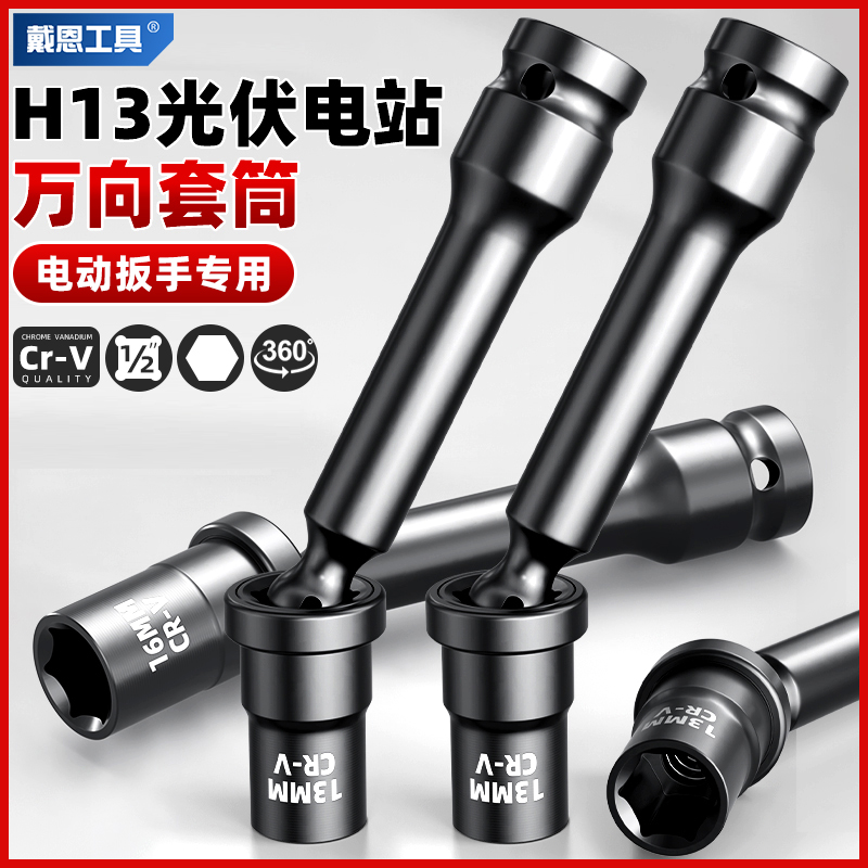 万向节套筒头光伏电站太阳能板专用安装 工具电动扳手加长杆连接杆