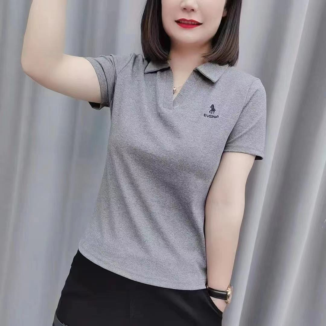 短袖 衫 t恤女夏季 翻领显瘦简约运动纯色半袖 休闲百搭大码 2024新款