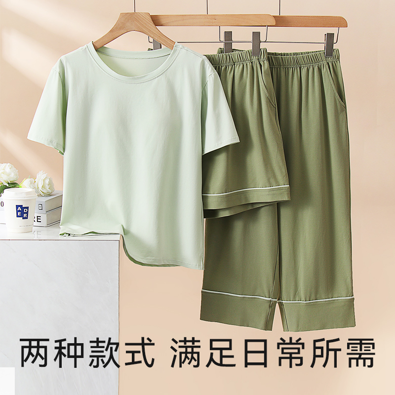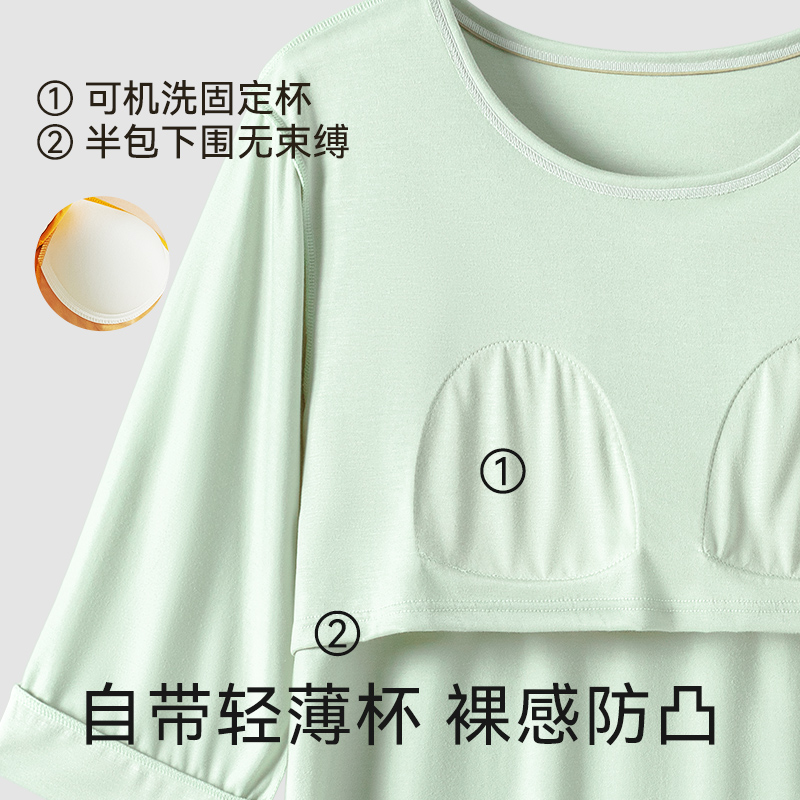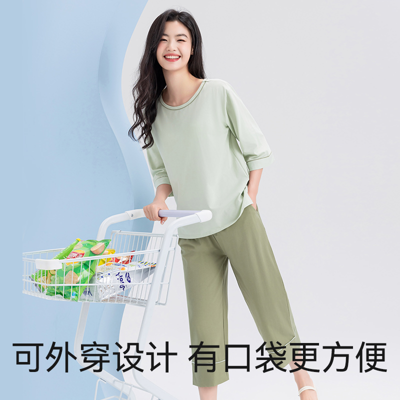 三件套带胸垫可外穿春秋薄家居服套装 短裤 短袖 猫人睡衣女纯棉夏季