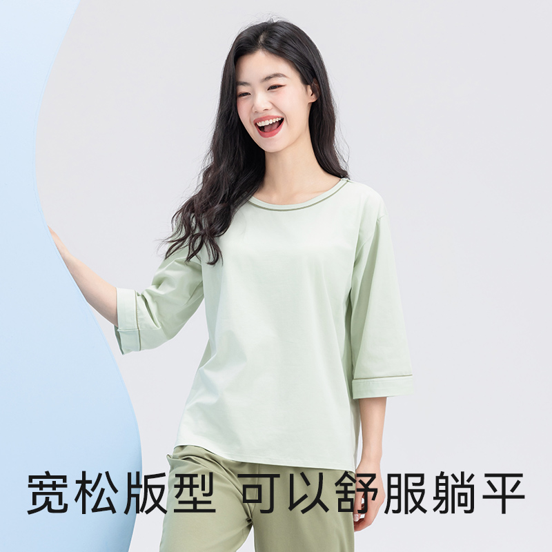 全棉时代睡衣男女士针织家居服情侣套装 7A抗菌除螨纯棉睡衣春秋季