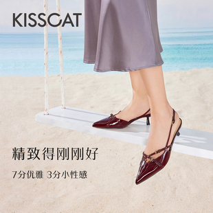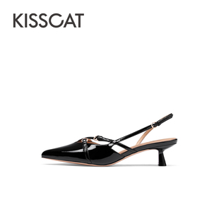 可爱恋人 接吻猫 新款 尖头后空鞋 女夏季 真皮高跟凉鞋 周洁琼同款