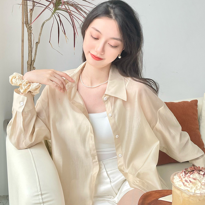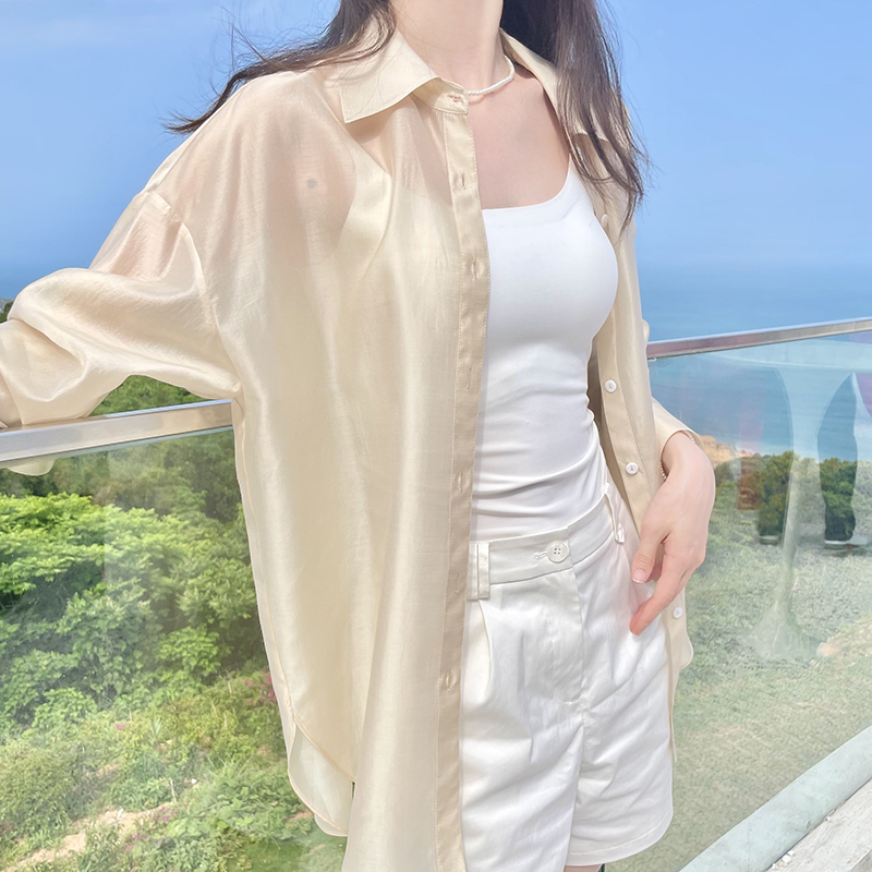 纯棉绣花上衣气质淑女刺绣衬衣 2025新款 初影杏色木耳领衬衫 女长袖