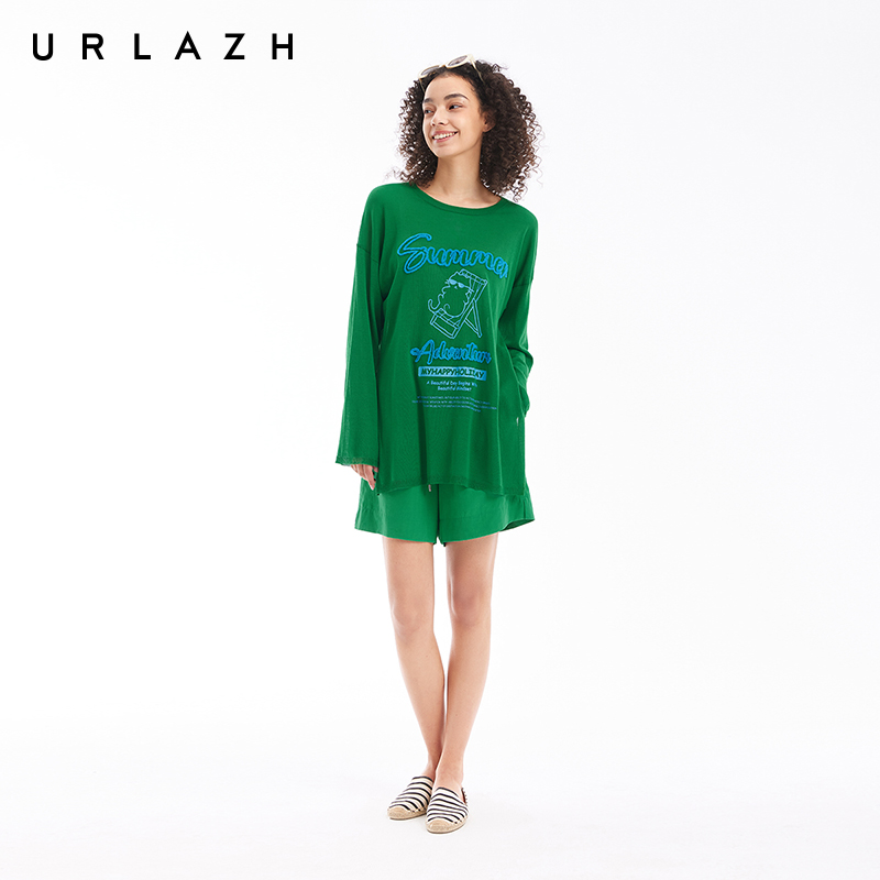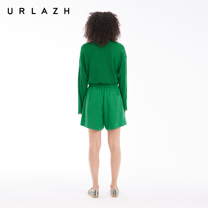 女 清新绿松紧腰轻薄垂顺宽松莱赛尔休闲短裤 URLAZH有兰夏季 新款