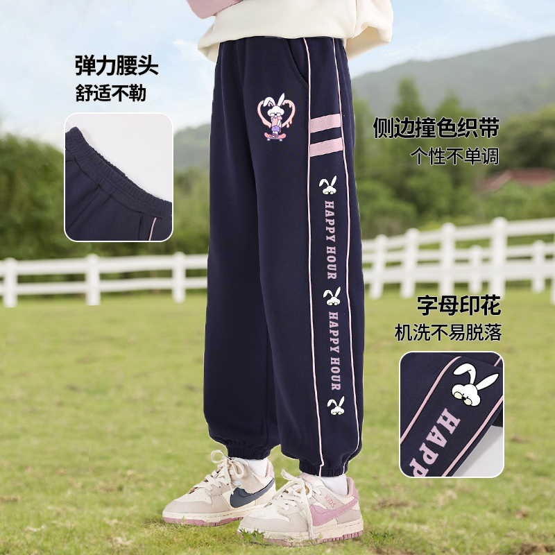 百搭宽松休闲哈伦裤 2025秋冬新款 子 女条纹拼接束脚运动裤 欧货卫裤