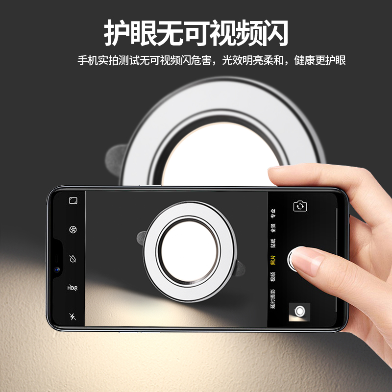 led嵌入式 筒灯家用客厅牛眼孔灯洞灯圆形吊顶开孔7.5cm三色天花灯