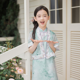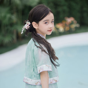 儿童汉服女童新款 十三余童装 套装 国风演出服唐装 夏 夏花清语