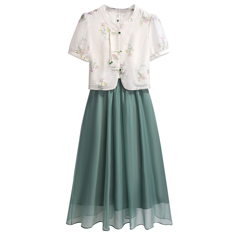 气质收腰显瘦大摆裙子 七分袖 茗思高级感印花连衣裙女2025秋装 新款