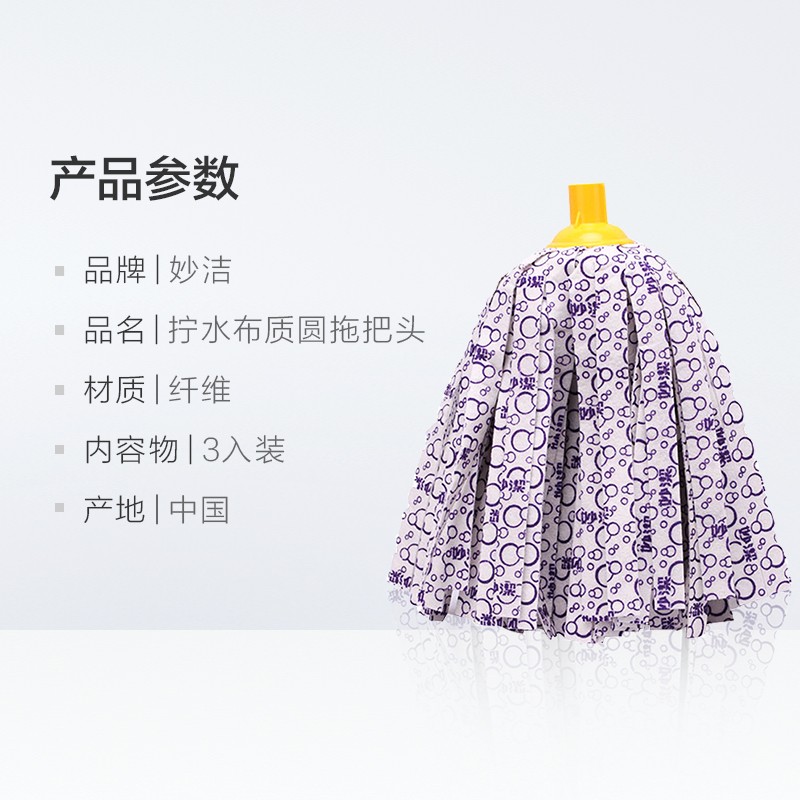 妙洁拖把头替换装 内径约2.2cm 拖把配件布质条状拖把布3只螺纹口