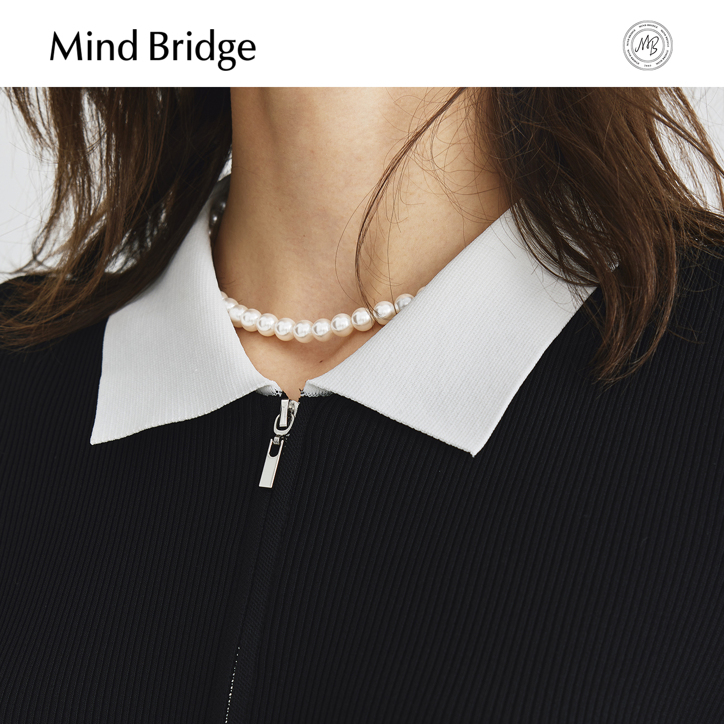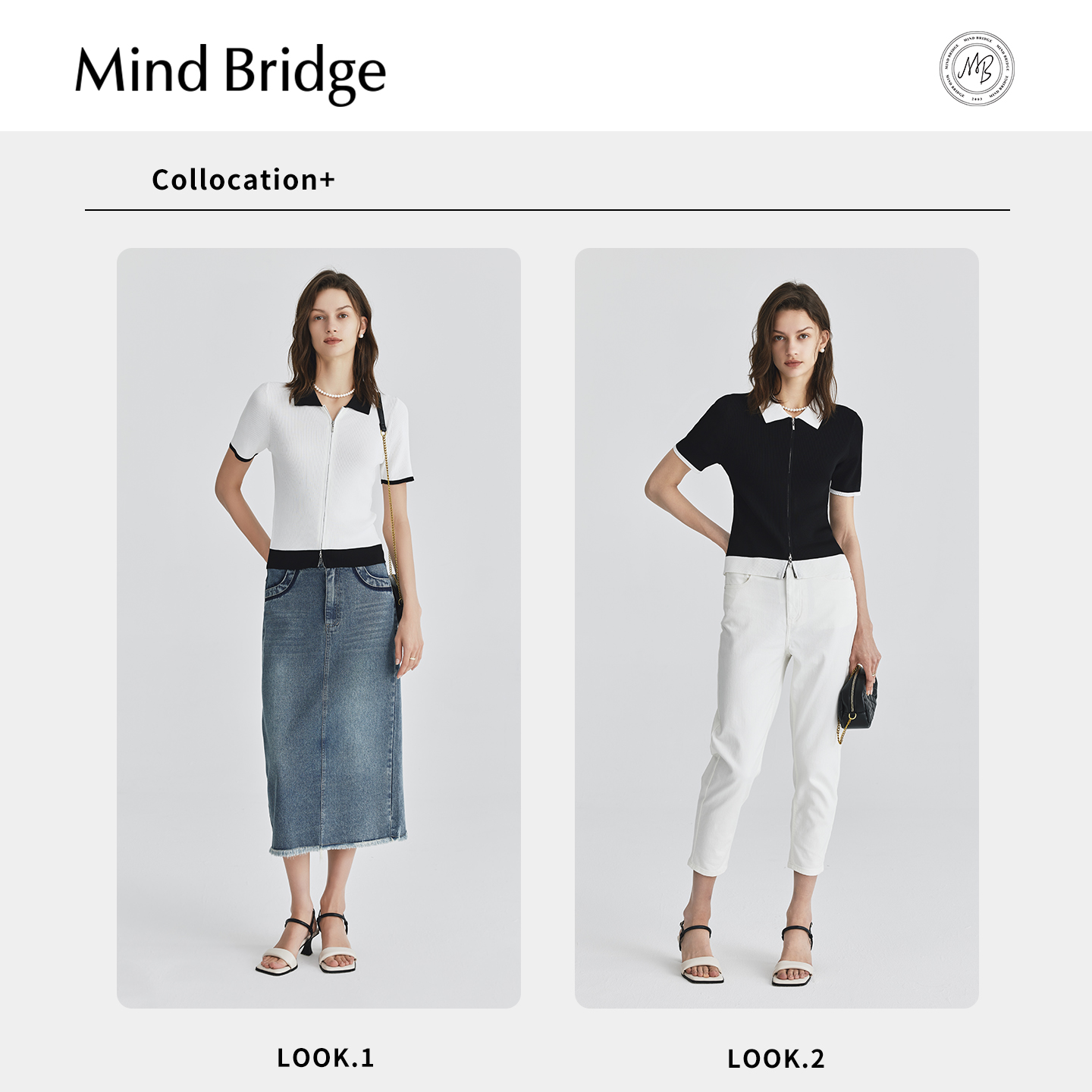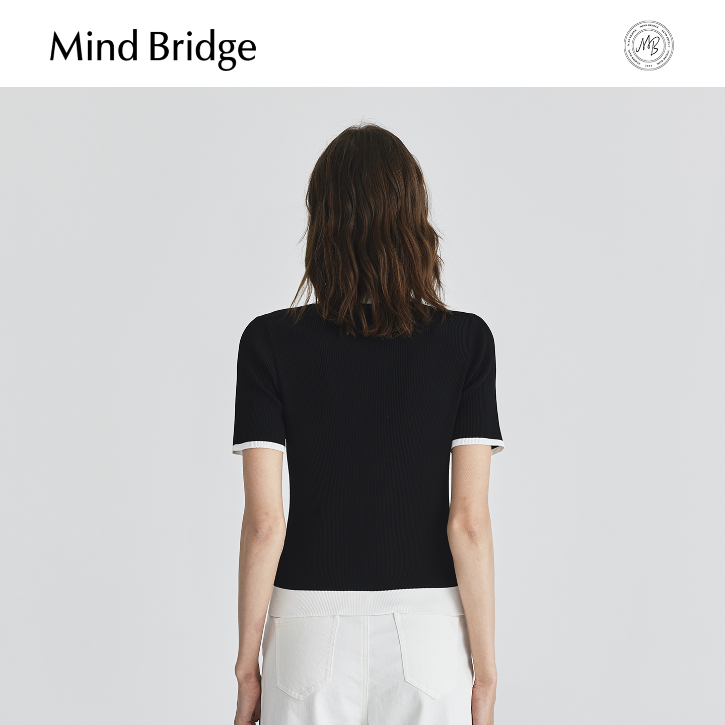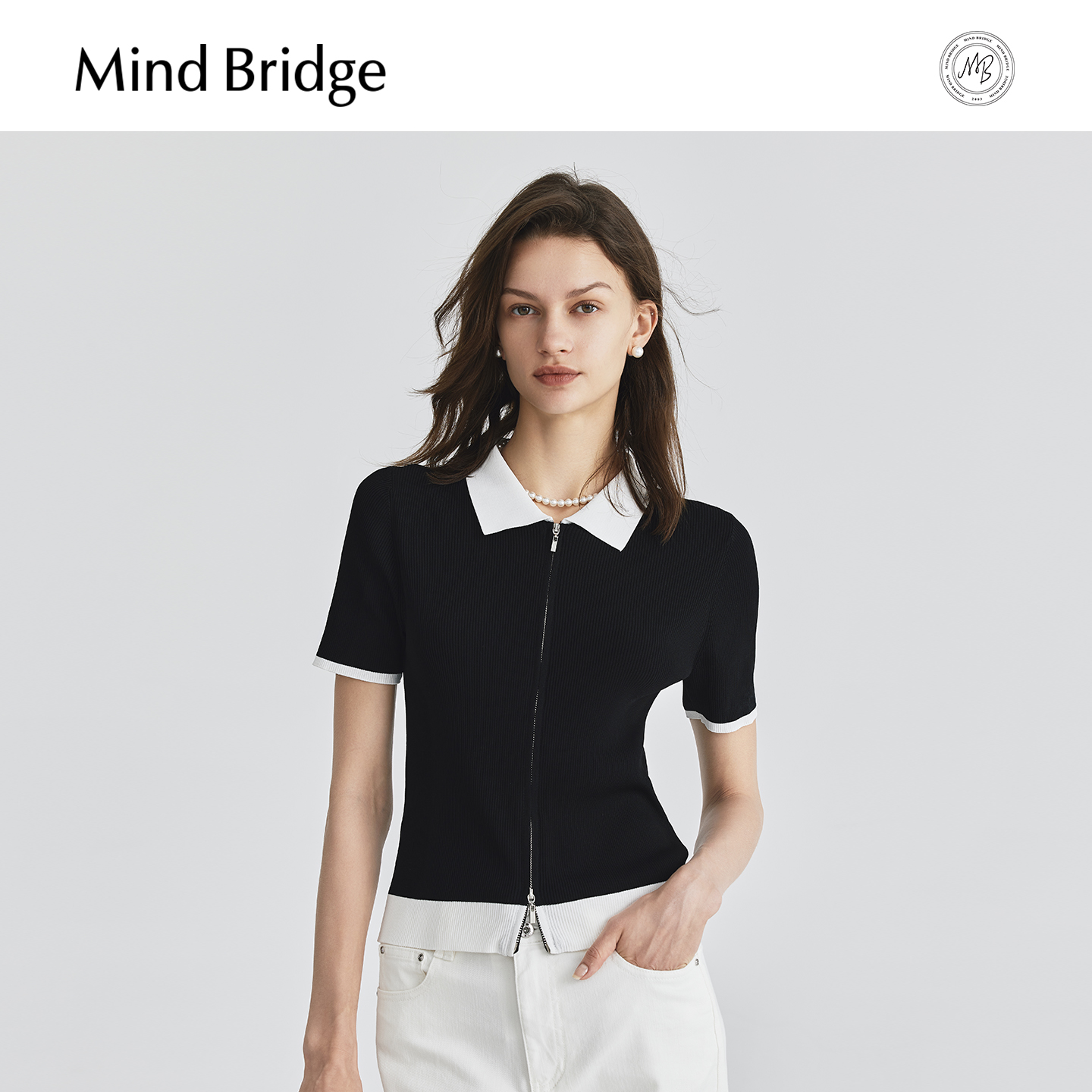 双拉链短袖 Mind Bridge韩系通勤显瘦上衣女士撞色Polo领针织夏季