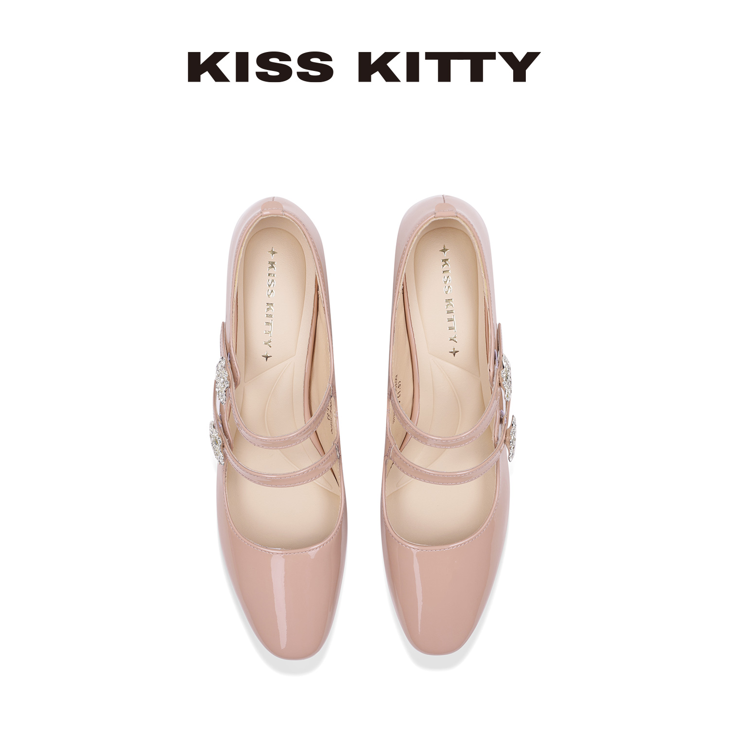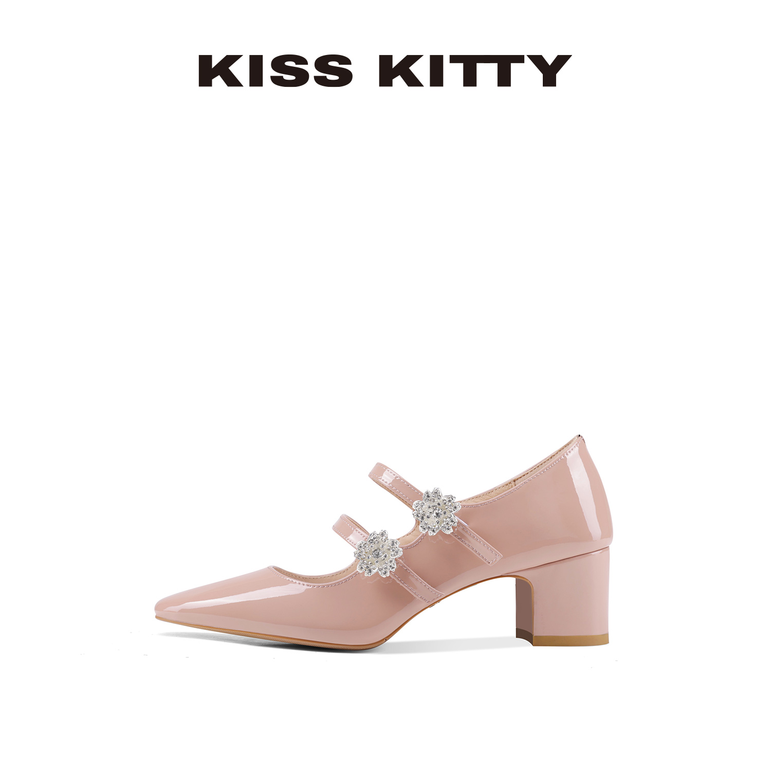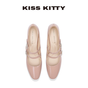 粗跟浅口单鞋 KISSKITTY玛丽珍鞋 小皮鞋 裸粉色绝美高跟鞋 女新款