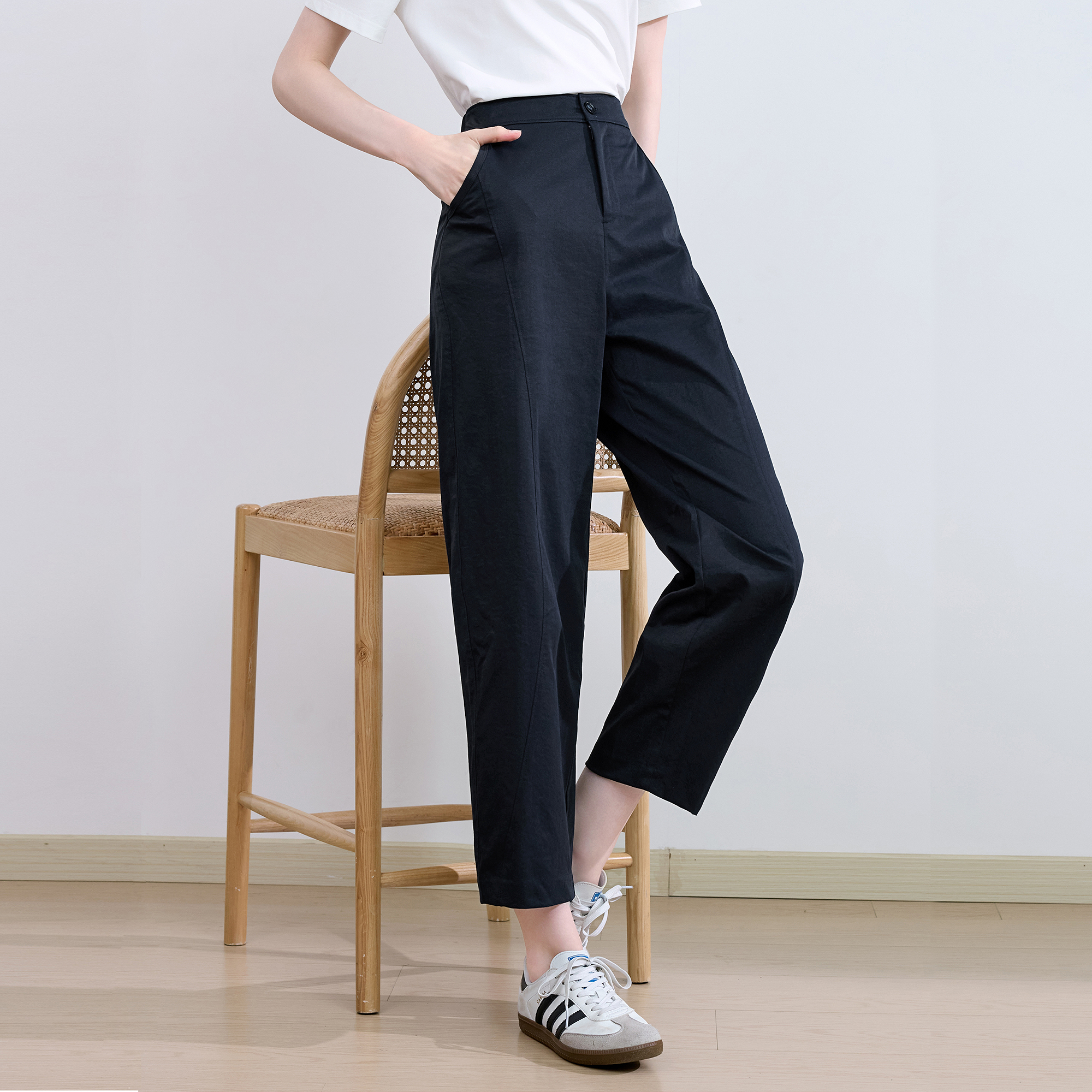 小个子哈伦裤 betu百图藏青色高腰九分裤 新款 2025年夏季 女弯刀裤