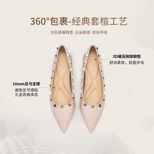 浅口单鞋 尖头法式 铆钉正装 奥康 平底鞋 2025秋季 内增高时尚 女鞋