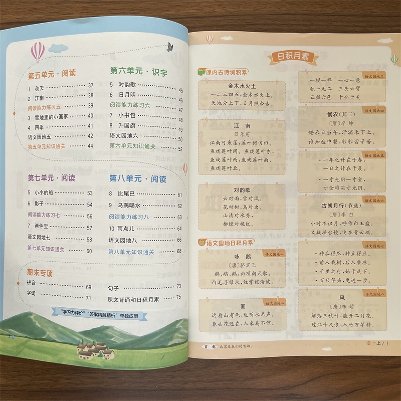检测随堂练习题册书 小学1年级上册语文同步练习册同步课本教材单元 2025秋阳光同学课时优化作业一年级上册语文河北人教版 RJ版