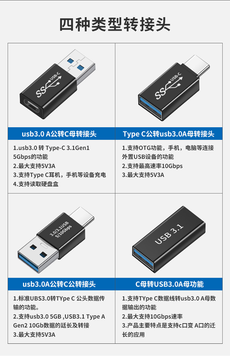 母头USB3.0双头type c公转usb公头延长数据线公转母笔记本电脑手机充电线转接头车载母口usd母对母两头UBS双