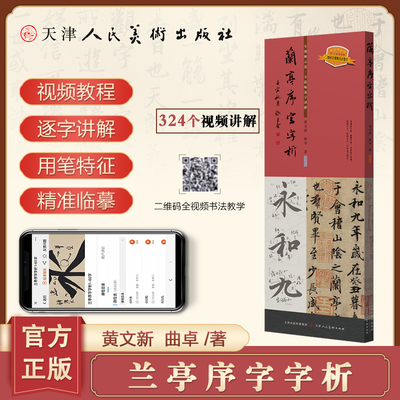 黄文新著 天津人民美术出版 324字全视频讲解 运笔笔顺章法结构王羲之毛笔行书书法字卡练字帖 社 赠兰亭序三种原帖 兰亭序字字析