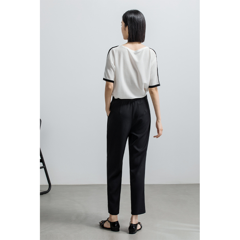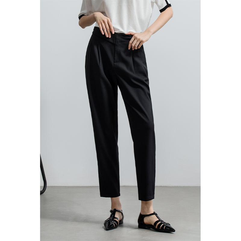 休闲通勤经典 女春秋新款 易菲高腰显瘦直筒小脚九分裤 Yifini
