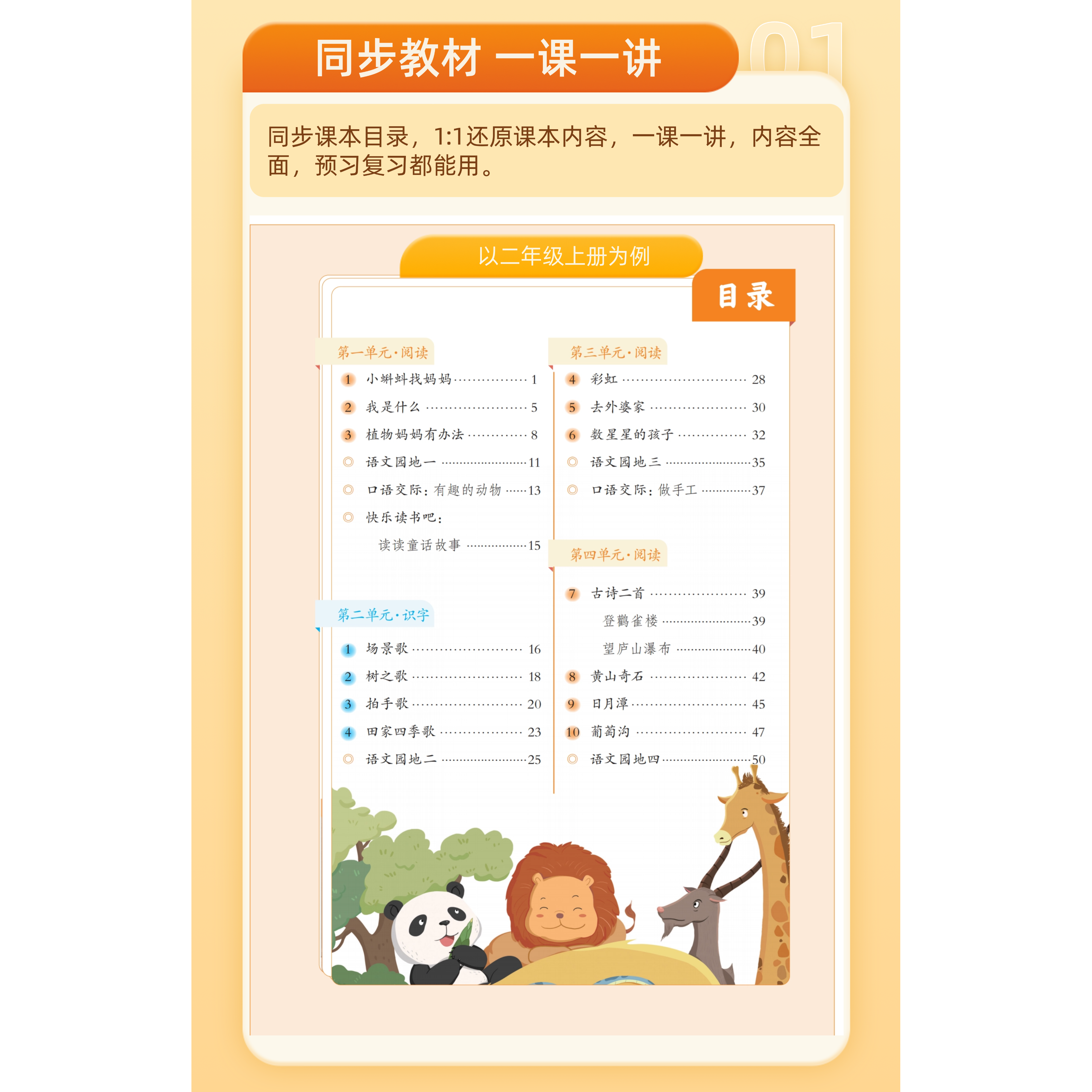 学霸同步教材解析黄冈 同步统编部编语文教科书册第一预习同款 正版 课堂笔记语文数学二年级上下册2025年人教版