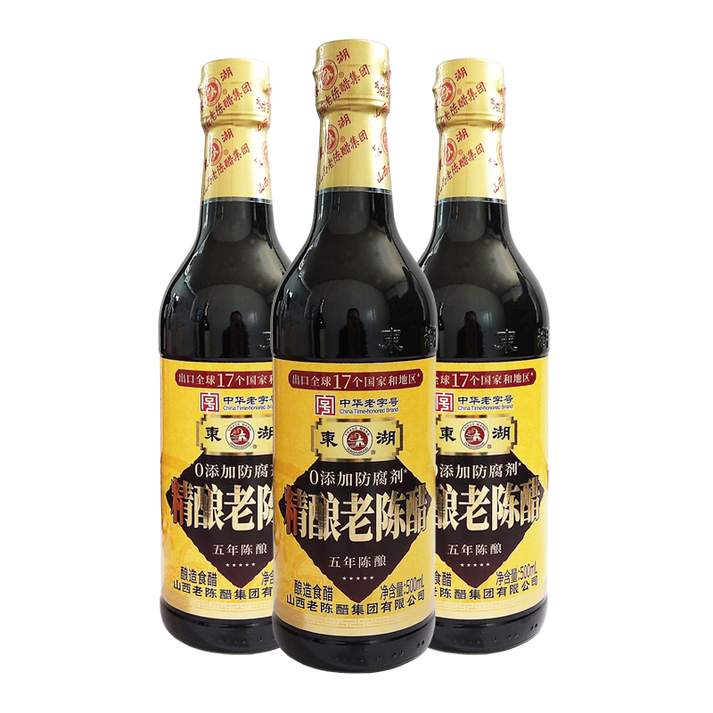 东湖老陈醋零添加五年精酿500mlx3瓶家用山西陈醋酿造食醋调味