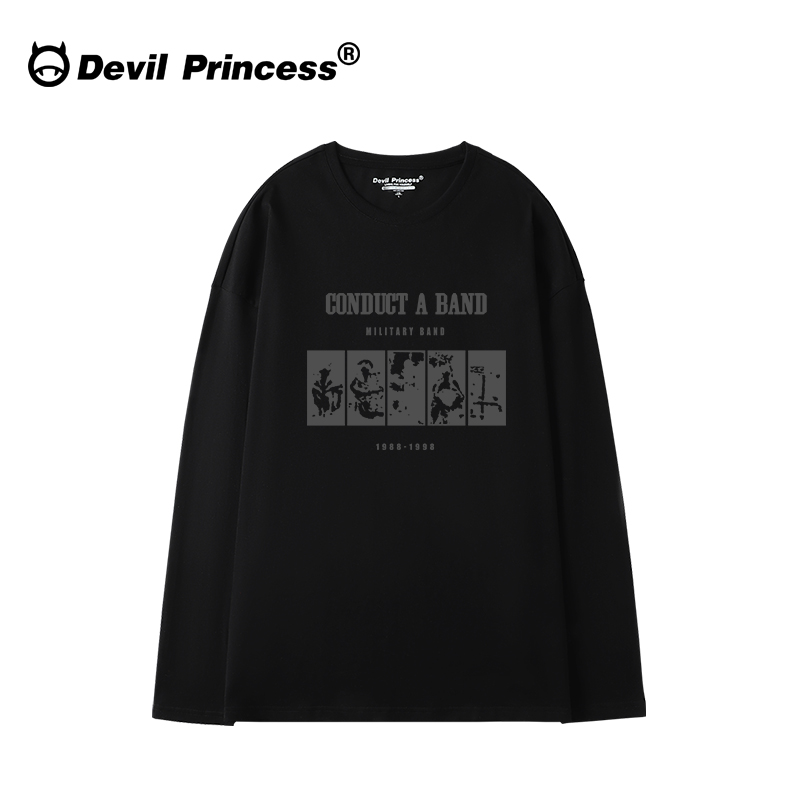 美式 黑色上衣 街头风ins潮酷打底t恤女上衣oversize高街设计感长袖