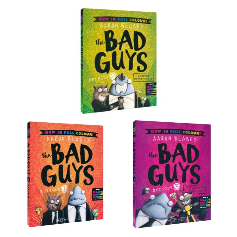 Bad Guys彩绘版 3册英文原版 Scholastic畅销童书 学乐坏蛋联盟The 全彩儿童漫画 英语课外章节书 斑达图书