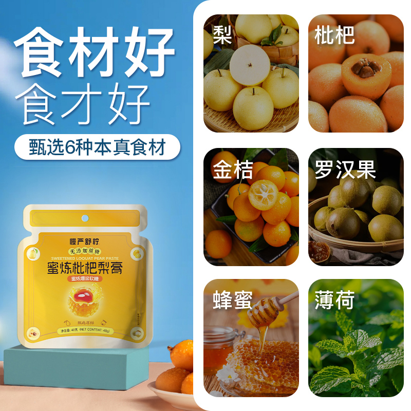 慢严舒柠蜜炼枇杷梨膏爆浆软糖0添加蔗糖富含vc金桔薄荷正品 国货