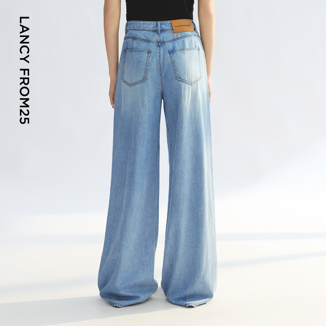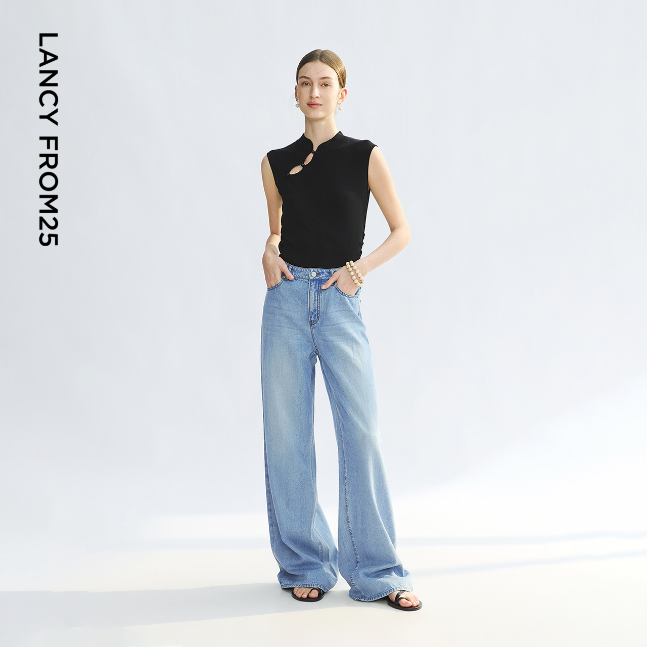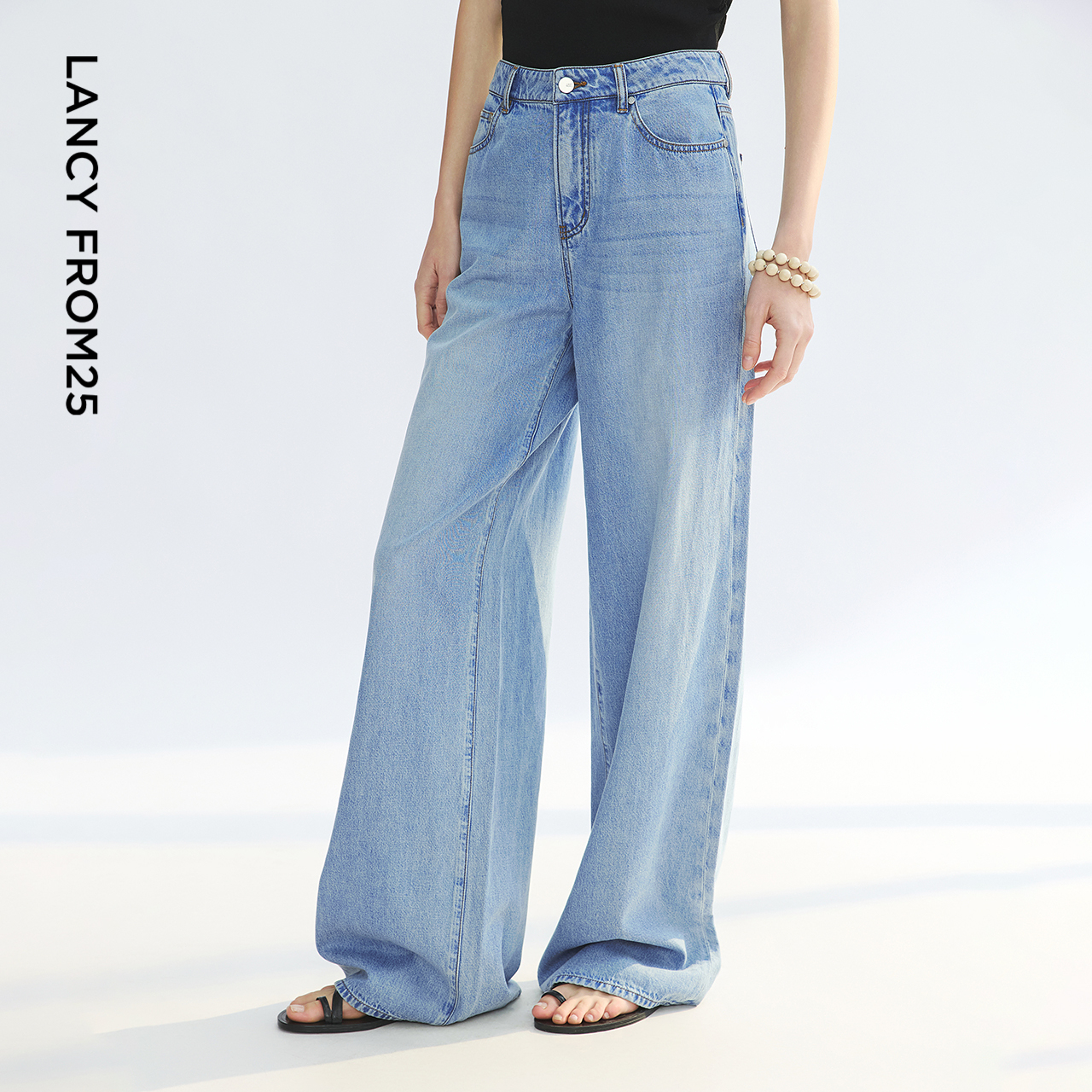 阔腿牛仔裤 朗姿2025夏新款 莱赛尔通勤气质高级感直筒高腰凉感长裤