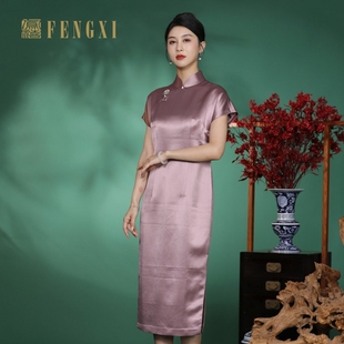 中式 MELINDA 博主同款 玲珑 冠乐绉提花桑蚕丝人丝旗袍连衣裙