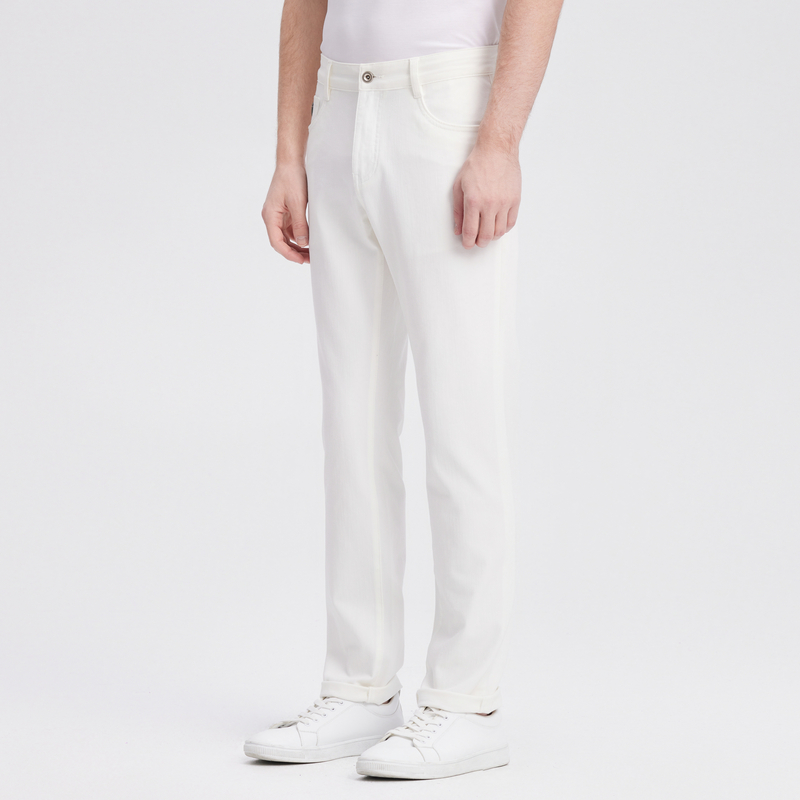 裤 MENHARDUM 年轻时尚 莱赛尔混纺白色长裤 子 蔓哈顿合体直筒牛仔裤