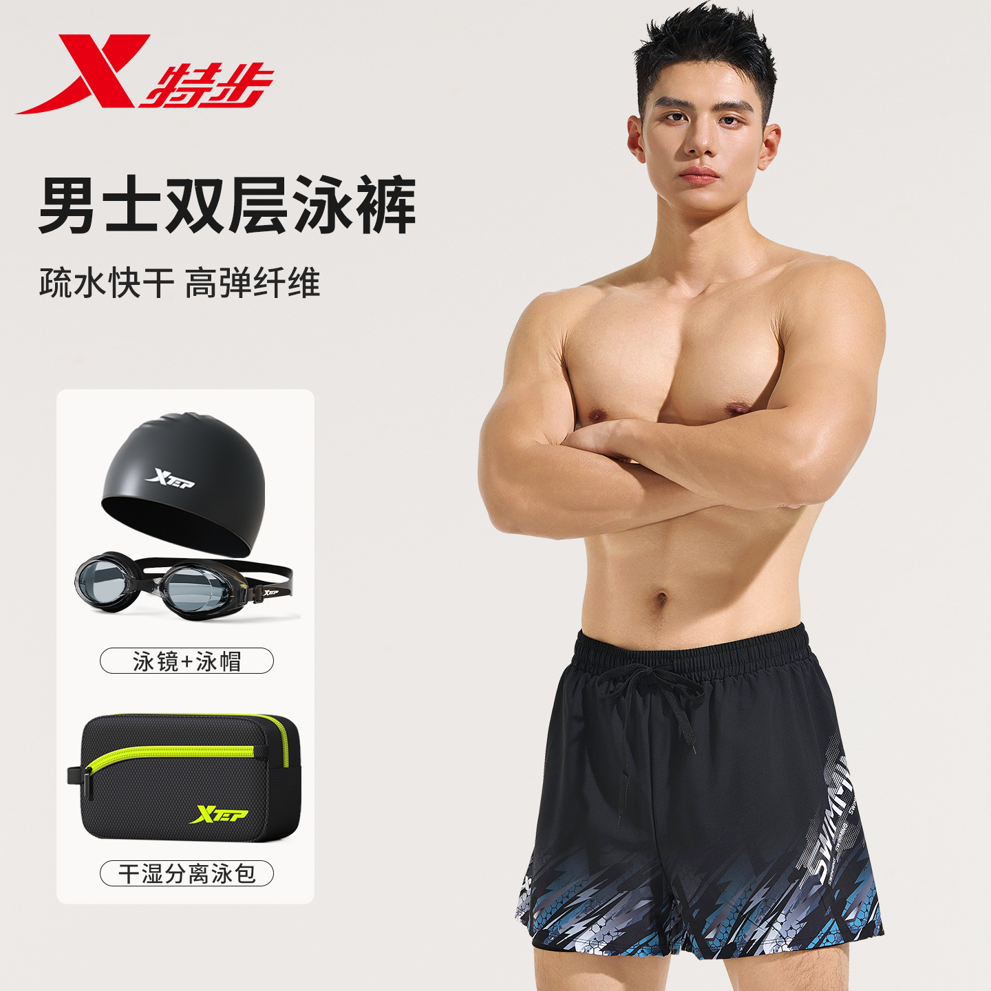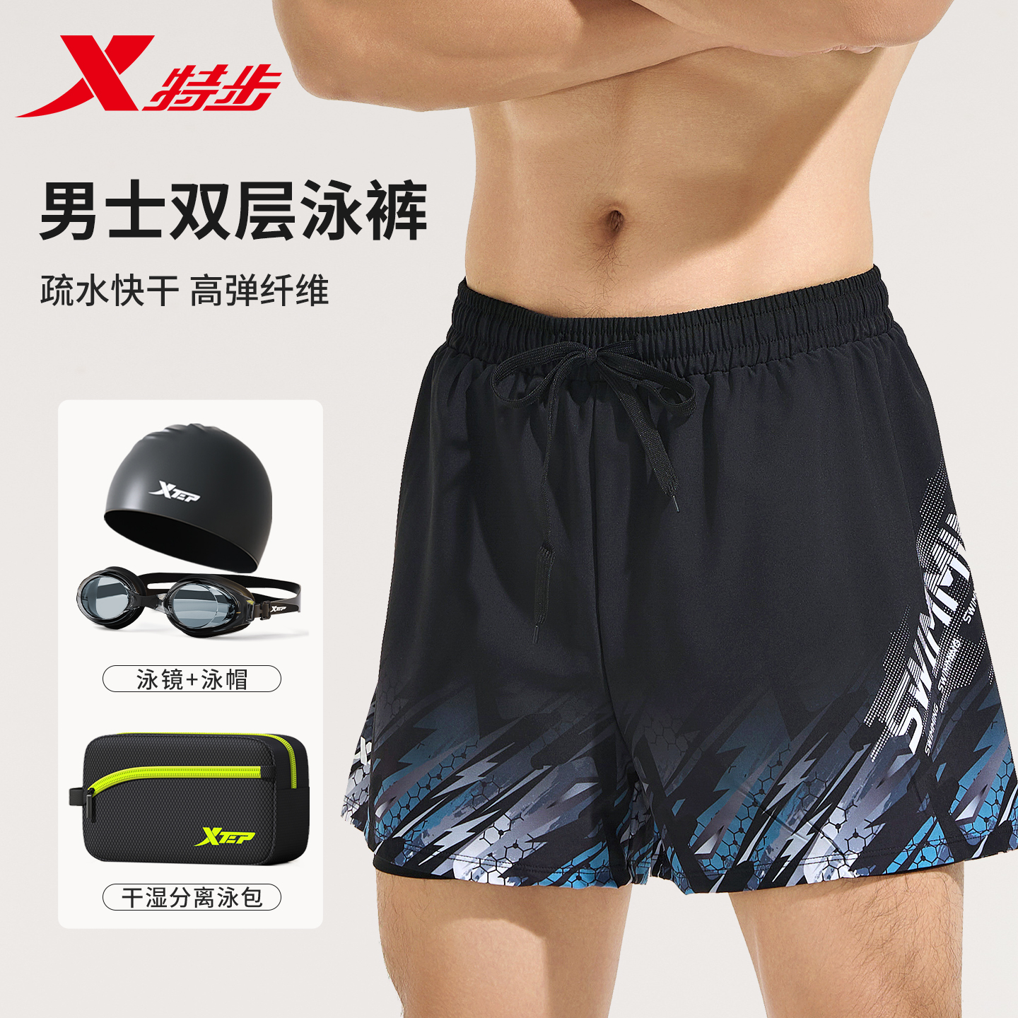 宽松游泳装 特步泳裤 防尴尬青少年游泳裤 成人2025新款 备男全套 男款