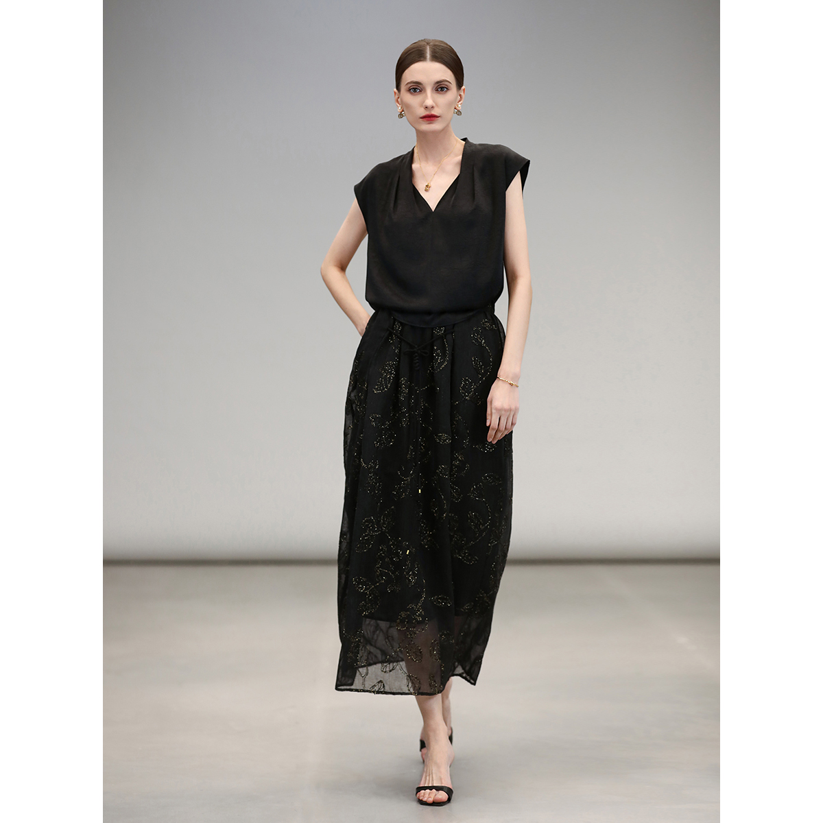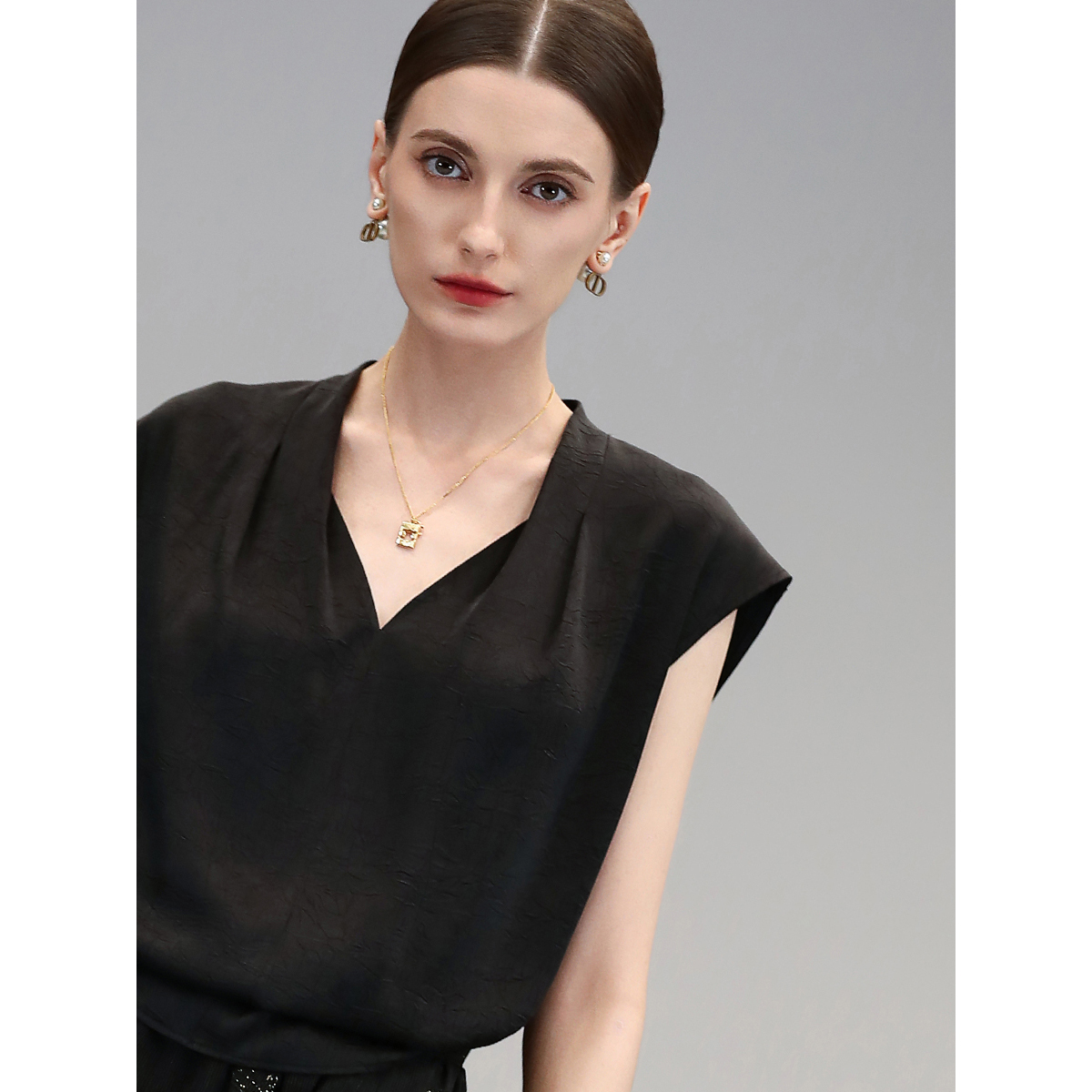 女气质V领通勤衬衣SR0027 COCOBELLA静奢风肌理缎面无袖 衬衫