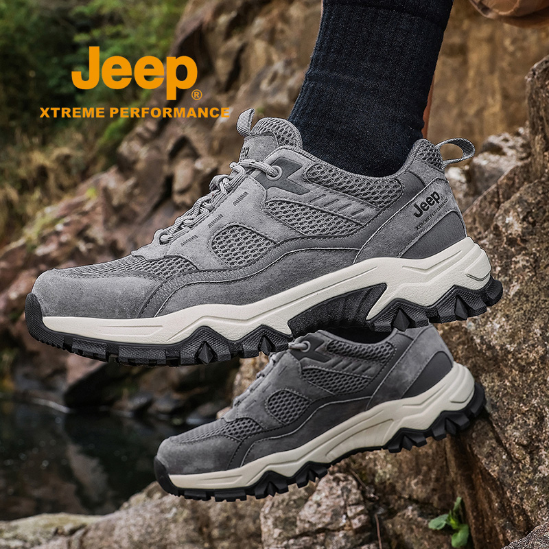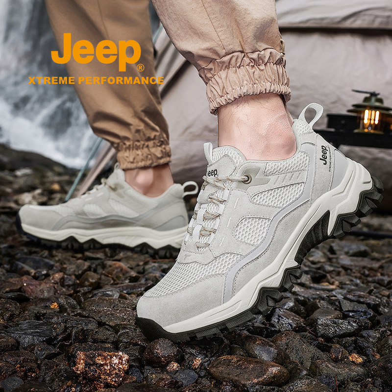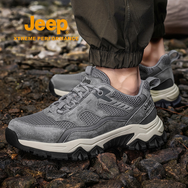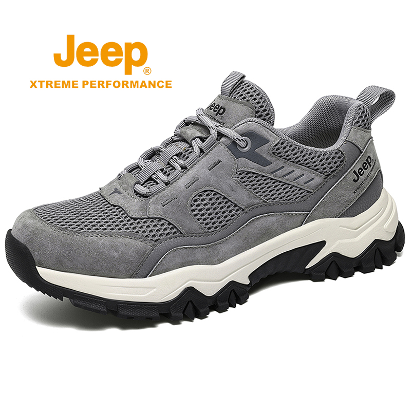 户外防滑轻便软底徒步登山鞋 Jeep男鞋 男士 透气网面休闲运动鞋 夏季