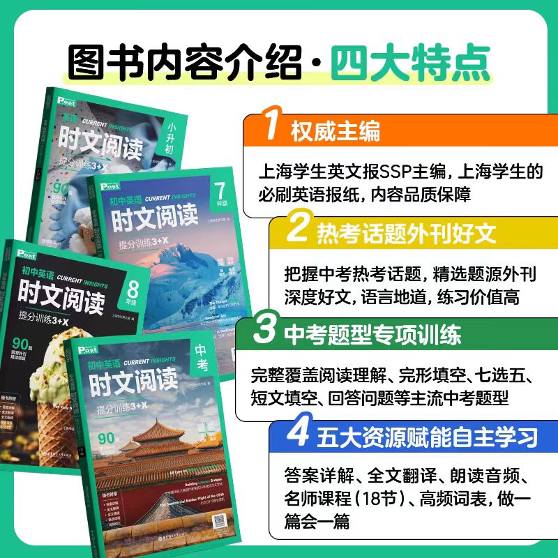 顺丰 中考时文阅读提分训练3+X 包邮 初中英语七八年级 90篇题源外刊精读精练随书附赠答案详解译文高频词汇单独成册 25春新版
