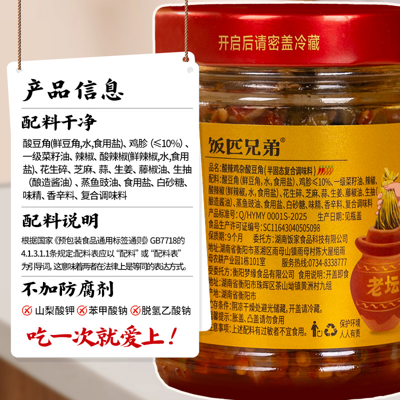 饭匹兄弟酸辣鸡杂酸豆角湖南特产剁椒辣椒酱下饭菜香辣拌饭酱瓶装