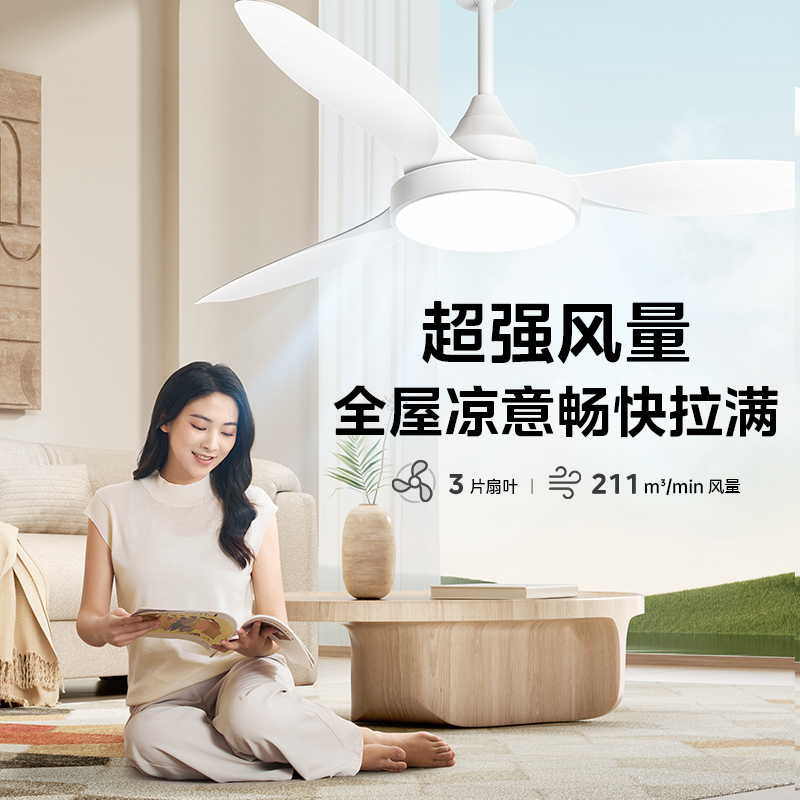 风扇灯吊扇灯 照明客厅吊灯现代简约客厅灯2024年新款 补贴15% 美