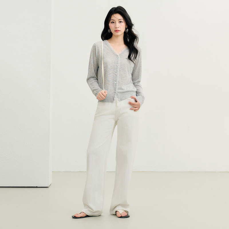 V领针织开衫 Basic 淡人长袖 百家好休闲宽松显瘦夏秋新款 女 House