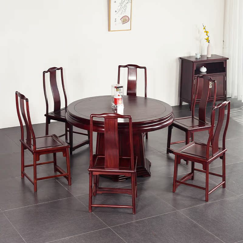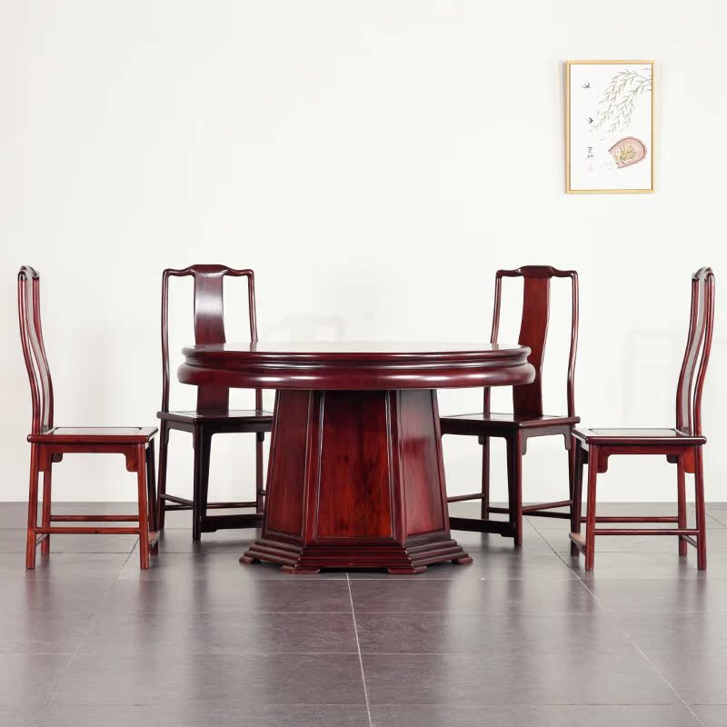 红木家俱非洲紫檀木餐桌新中式 圆桌古典家用饭桌血檀木餐桌椅组合