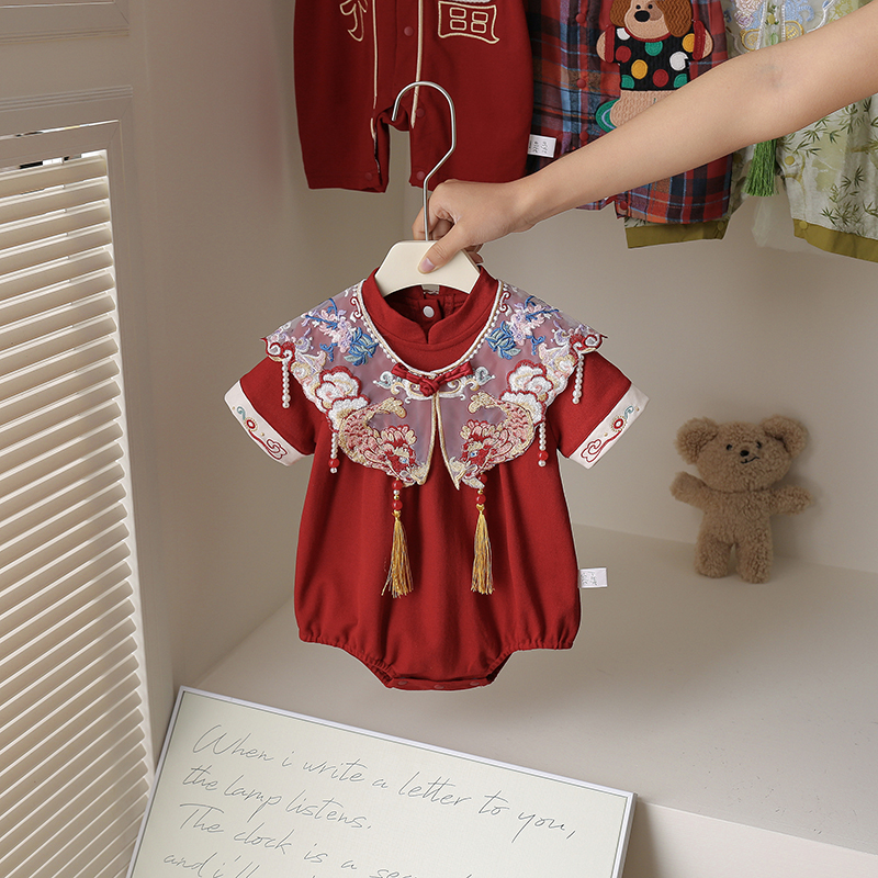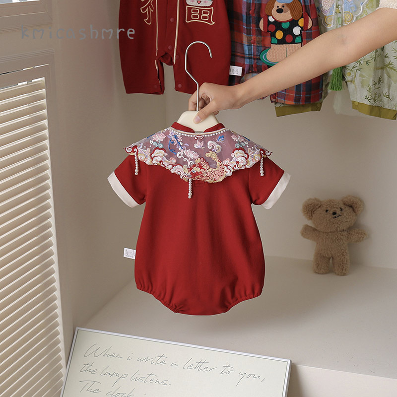 包屁衣 哈衣连体衣夏季 kmi婴儿衣服夏装 女宝宝百天周岁宴抓周中式