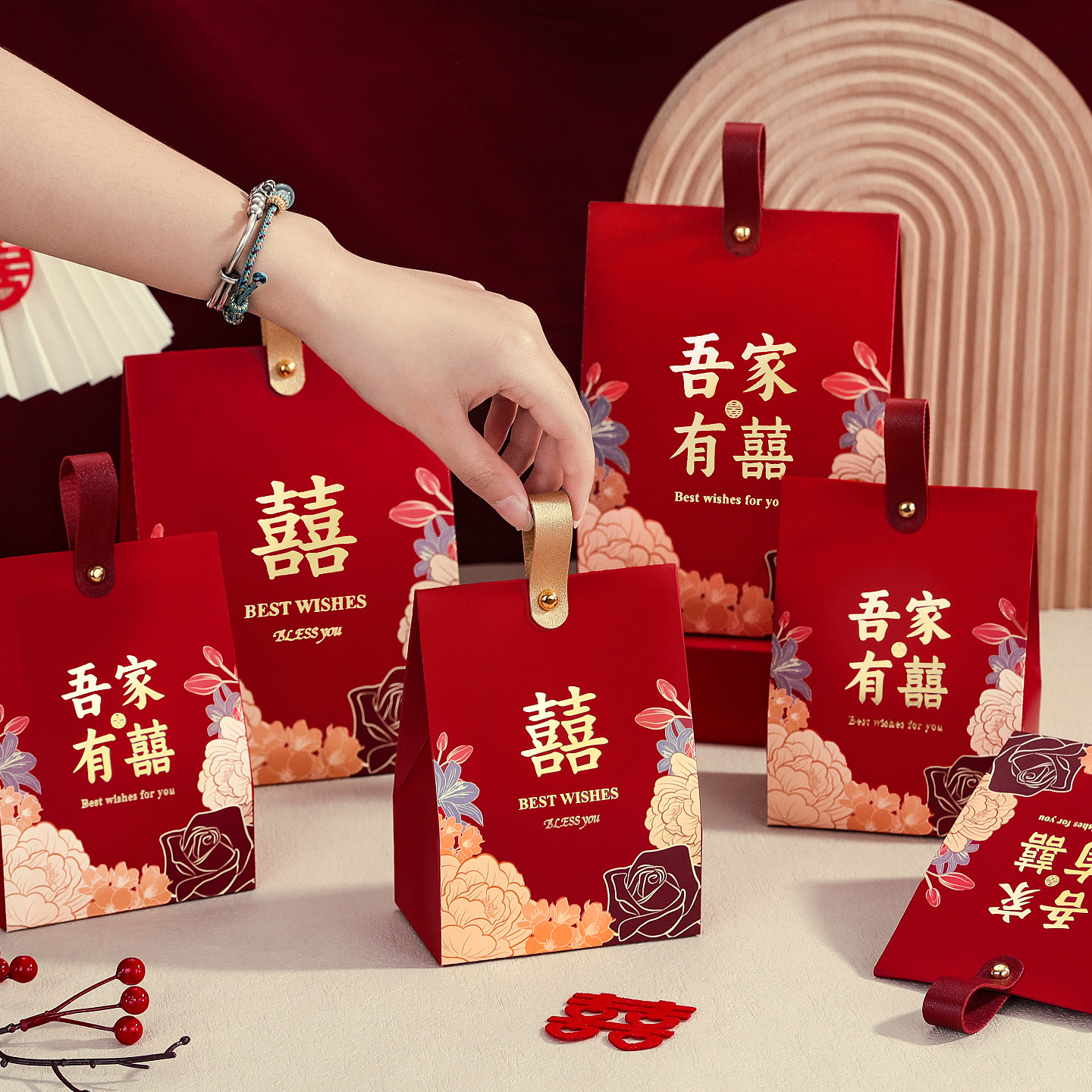 结婚喜糖盒子2025新款 婚礼手提糖果礼盒空盒高级感订婚伴手礼品袋