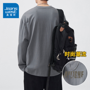宽松百搭打底衫 新款 潮流印花休闲上衣 T恤男秋季 KZH真维斯港风长袖