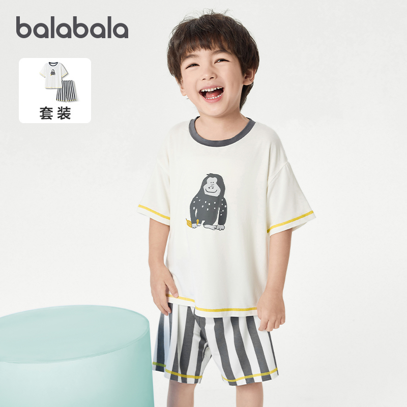 童装 巴拉巴拉男童睡衣套装 新款 2025秋季 潮 儿童家居服宝宝凉感短袖