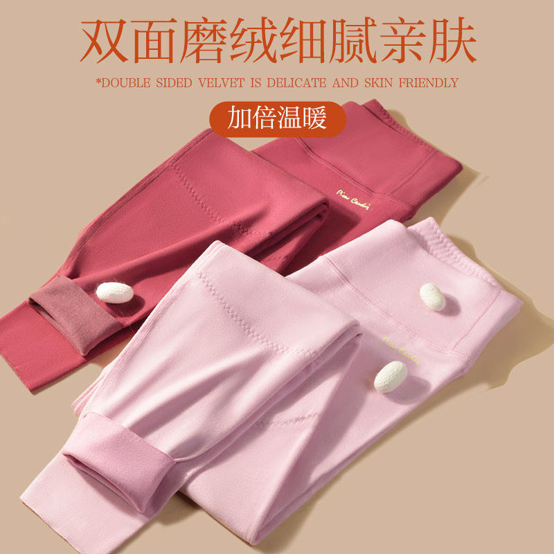 发热蚕丝打底裤 鸭鸭德绒保暖裤 加绒高腰线裤 秋裤 女士内穿紧身冬季