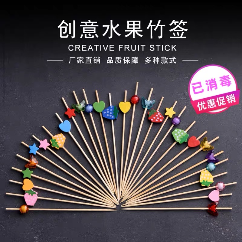 一次性水果签竹签花签水果叉子艺术牙签鸡尾酒签三明治签果插新款