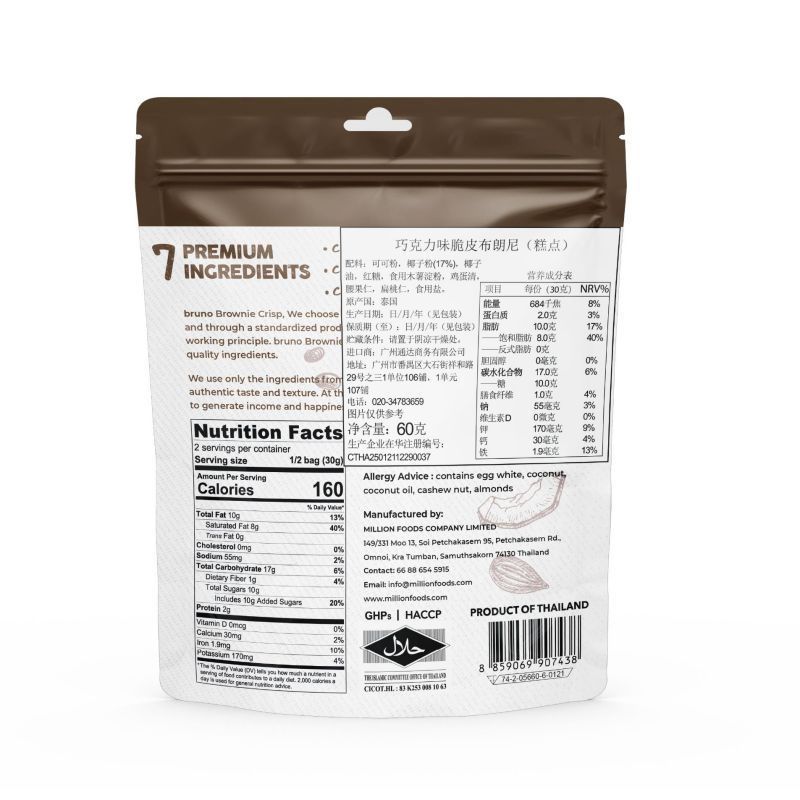 泰国进口I BRUNO巧克力脆皮布朗尼饼干烘培休闲网红追剧小零食