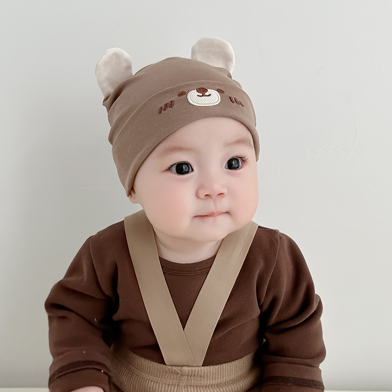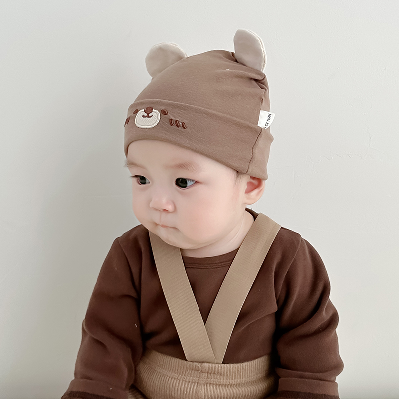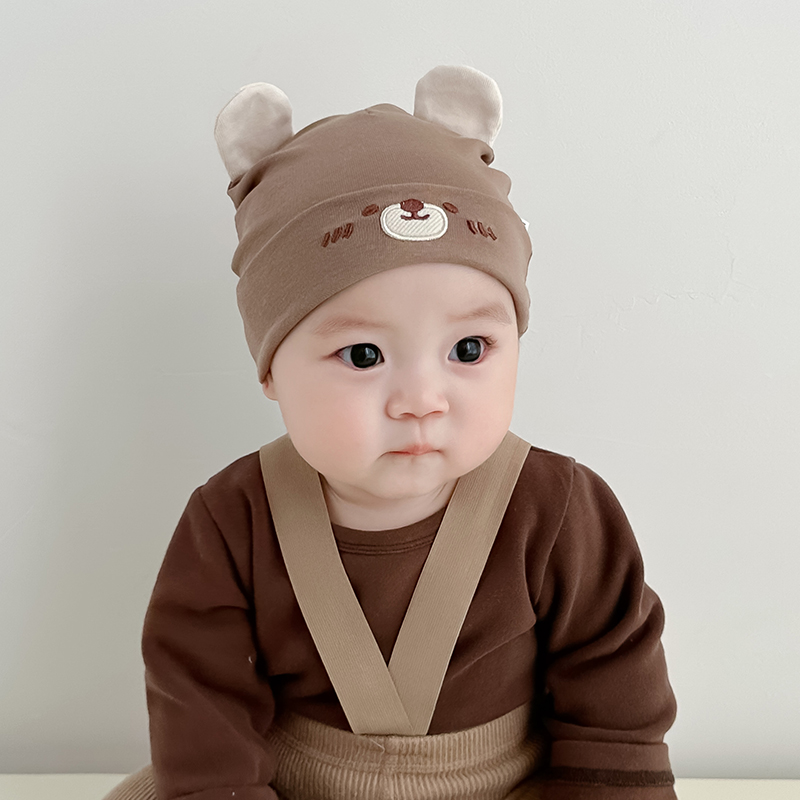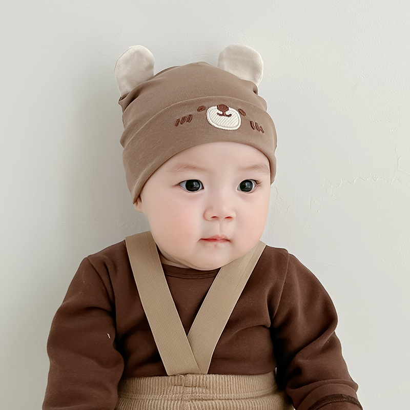 尼多熊婴儿帽子秋冬季 新生儿胎帽半边绒护耳帽保暖幼儿宝宝帽