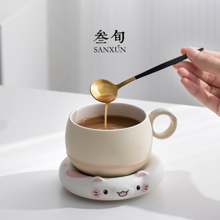 浮雕小猫杯子女生高颜值马克杯可爱创意情侣水杯陶瓷办公室咖啡杯