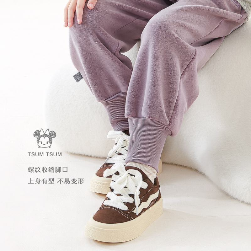 加绒街舞穿搭褶皱宽松休闲长裤 女秋冬季 子 灰色运动卫裤 自然涩美式