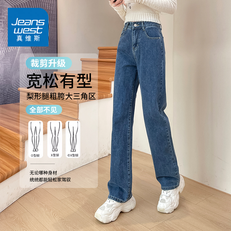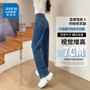 小个子高腰显瘦宽松直筒长裤 美式 2025新款 女春秋季 浅色阔腿牛仔裤
